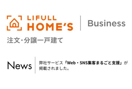 LIFULL HOME'S Businessの注文・分譲一戸建てサイトの集客数増加業務支援サービスに弊社サービスの「Web・SNS集客まるごと支援」が掲載されました。 詳細はこちら